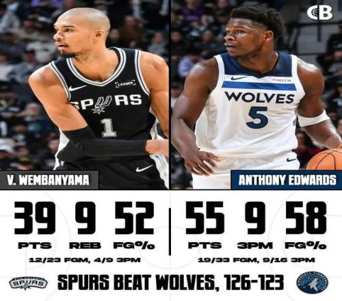爱德华兹对飚文班亚马的比赛,绝对算得上是赛季十大比赛的候选。当家球星双双闪耀,比赛过程跌宕起伏一直打到最后一秒,并且文班和华子,都是那种谁都不服谁的性格,不服就干。