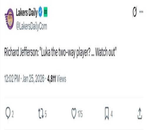 前NBA球员杰弗森面对东契奇这样的表现坦言:“卢卡已经是攻防兼备的球员,联盟其他球队要小心了。”