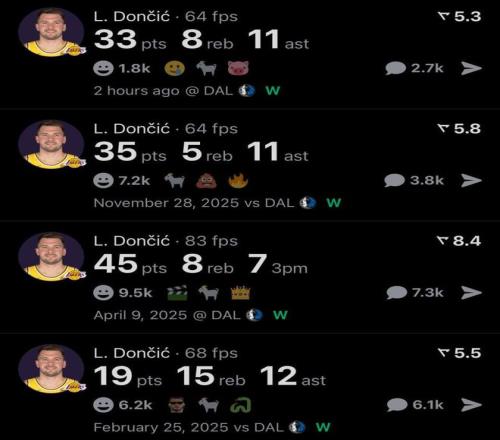 这也是东契奇加盟湖人后对阵老东家独行侠傲人表现的缩影,生涯至今,东契奇4次对阵独行侠场均可以轰下33分9板10.3助全能数据,取得4胜0负的不败战绩。